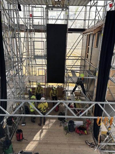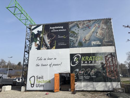 Wir bieten hier die Möglichkeit, Ihre Mitarbeiter sowohl in der Theorie im Schulungsraum als auch in der Praxis an unserem vielfältigen Gerüstturm zu unterweisen. Der Turm ist so ausgebaut, dass er alle Möglichkeiten der Praxis, wie gesichertes Arbeiten an einer Steigleiter, auf einem Schrägdach oder auch im Gerüst abbildet. Er hat eine Höhe von 12 Metern.